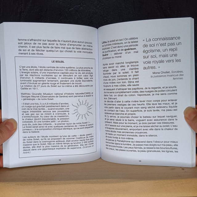 Avec son petit chat Djina pour compagne, des récits inspirants pour guides et la science pour boussole, Ana Dess nous invite à se (re)connecter aux cycles de la vie, et honorer chaque saison. Au rythme du calendrier Celte, l’enfant, l’adolescente, la femme et l’artiste, cheminent en quête de leur nature profonde. Un récit hommage au mystère, à la simplicité et à l’émerveillement.